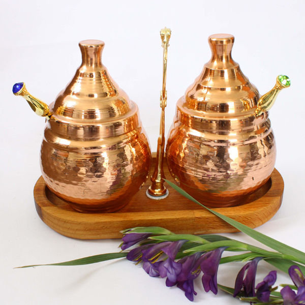 – Two copper honey jars