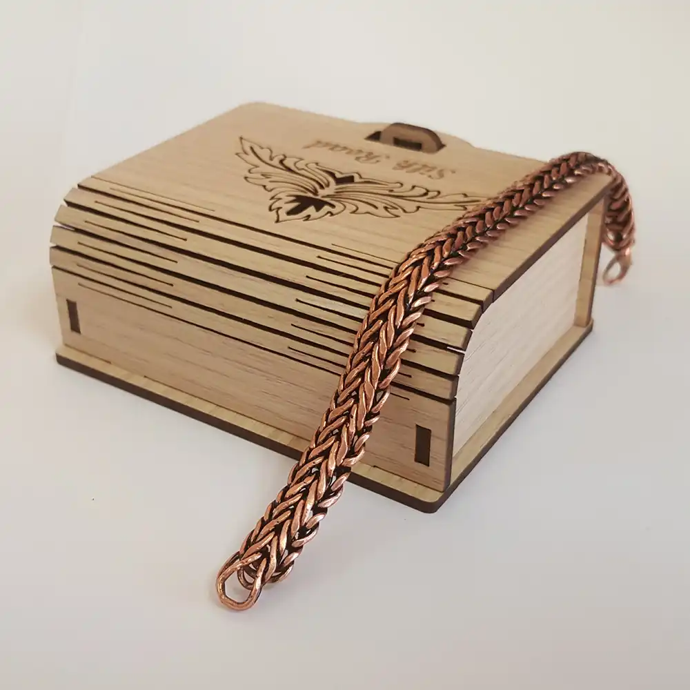 Saba Copper yüksək keyfiyyətli mis zinət əşyaları, o cümlədən bu zərif zəncir toxunuşlu bilərziyi təqdim etməklə qürur duyur. Hər bir parça dəqiqlik və diqqətlə hazırlanır, beləliklə, həm gözəl, həm də dayanıqlı bir məhsul əldə edirsiniz. Saba Copper-in keyfiyyət və sənətkarlığa olan bağlılığı, onun zinət əşyalarını hər kolleksiya üçün dəyərli bir investisiya halına gətirir.