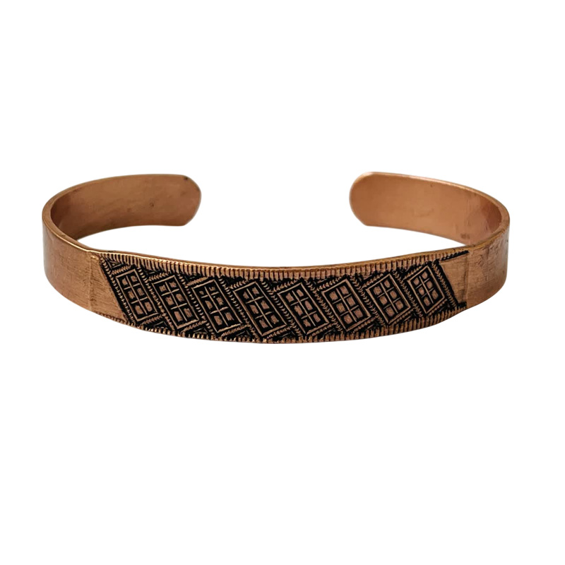Orijinal Geometrik Tasarımlı Bakır Manşet Bileklik | Unisex Ayarlanabilir Bileklik